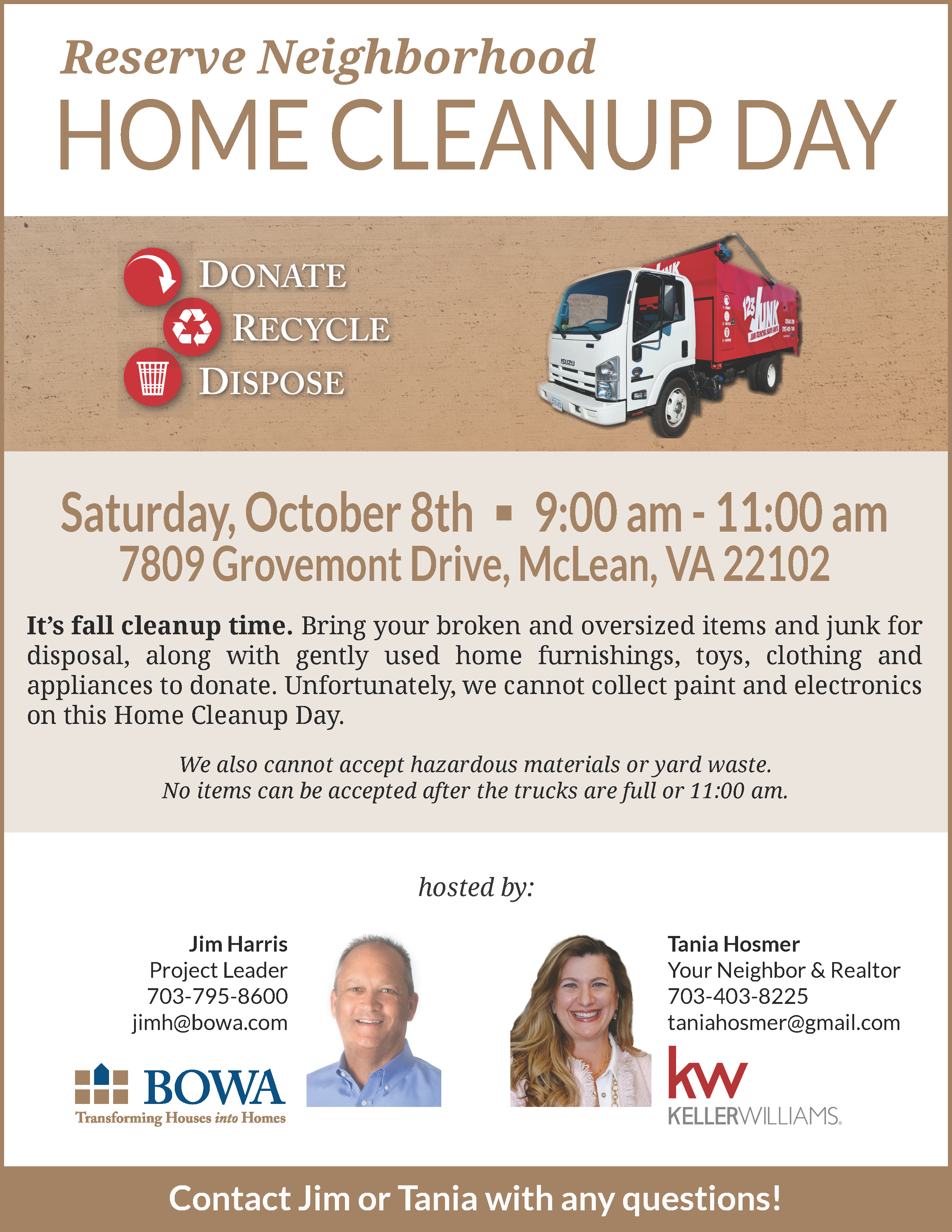 HOME CLEANUP DAY — SAT, OCT 8, 9 – 11 AM
