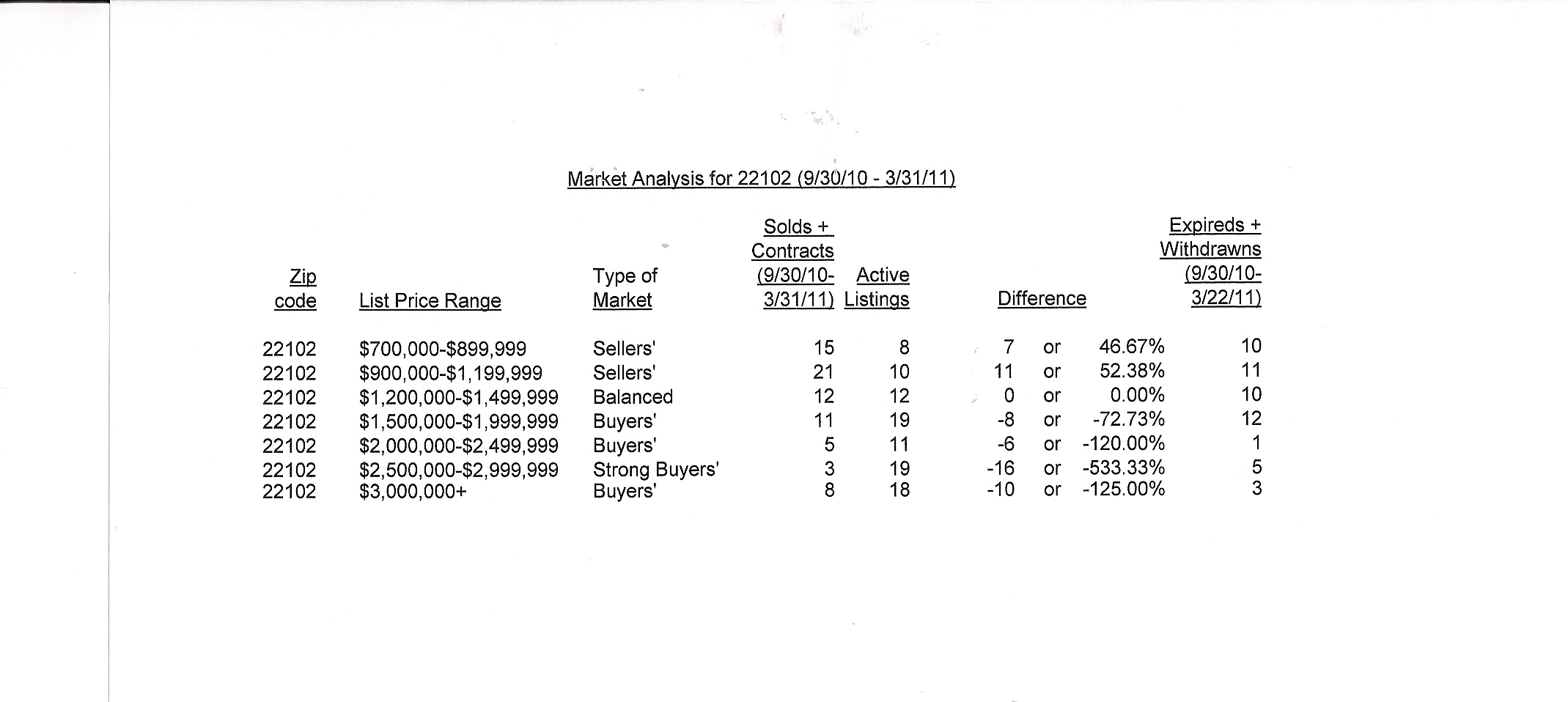 McLean, Virginia 22102 Market Analysis – 9/22/10 – 3/22/11