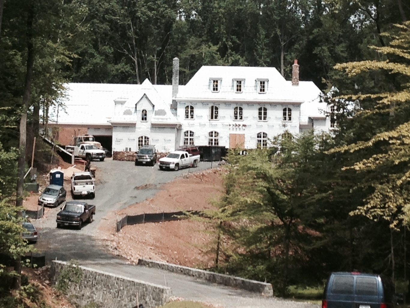 The extraordinary new custom built mansion that was under construction at 880 Centrillion Drive, McLean, Virginia  22102 is now complete and called “Skyfall.”  Built by renowned local builder — the Galileo Group — the owners of this exquisite new residence will enjoy a pool and beautifully landscaped grounds by Fine Landscapes among other luxurious amenities.  This grand estate home was built on 2.5 acres of land that is surrounded by a protected piece of property — a conservation easement.  The land was purchased for $1,500,000 on 2/22/13 (with cash while it was not listed in the MLS) and cost close to another $1 M to develop the land on which the residence and all it’s wonderful amenities were built, according to the real estate agent that previously had the lot listed for sale.  The cost for construction of this home is not public information, but a good estimate for the total cost to build this luxurious estate would be somewhere between $7 and 8 million based on the builder, finishes and quality of building materials — including a stone bridge over a creek for the driveway to the main house, a solid mahogany front entry door, copper over-sized gutters and downspouts, a slate roof, a solid building stone (not a veneer) exterior with natural cedar shingle accents, several masonry fireplaces, working shutters, and a large backup generator — just to name a few.  The great attention to detail is obvious — there’s even a two-car garage tucked into the hillside.